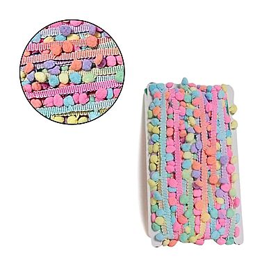 Tira Pompon 2.0Mm N° Pastel Multicolor Rollo X 20 Yardas