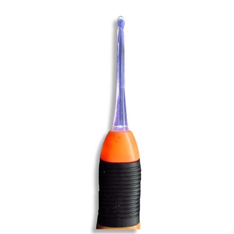 La aguja crochet con luz LED es la compañera perfecta para quienes buscan tejer sin restricciones de luz ni fatiga visual. Su sistema de iluminación integrada mejora la visibilidad de cada puntada, permitiendo trabajar en ambientes oscuros o sobre hilos oscuros con total precisión. Su mango ergonómico con superficie antideslizante ofrece un agarre firme y cómodo, mientras que su diseño liviano facilita el uso prolongado. Es ideal tanto para proyectos detallados como para tejidos voluminosos.