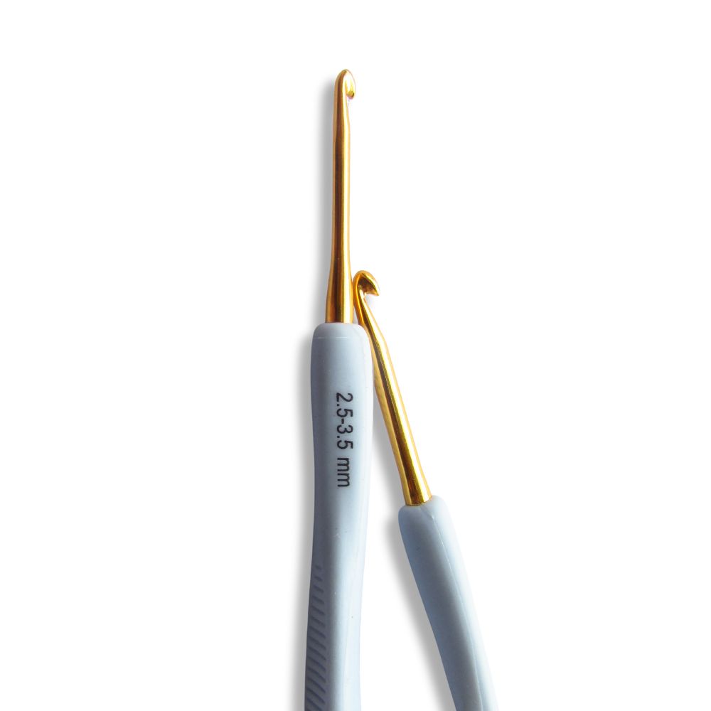 Aguja Crochet Doble Servicio Mango Silicona 2.5-3.5 Paquete X6 Unidades