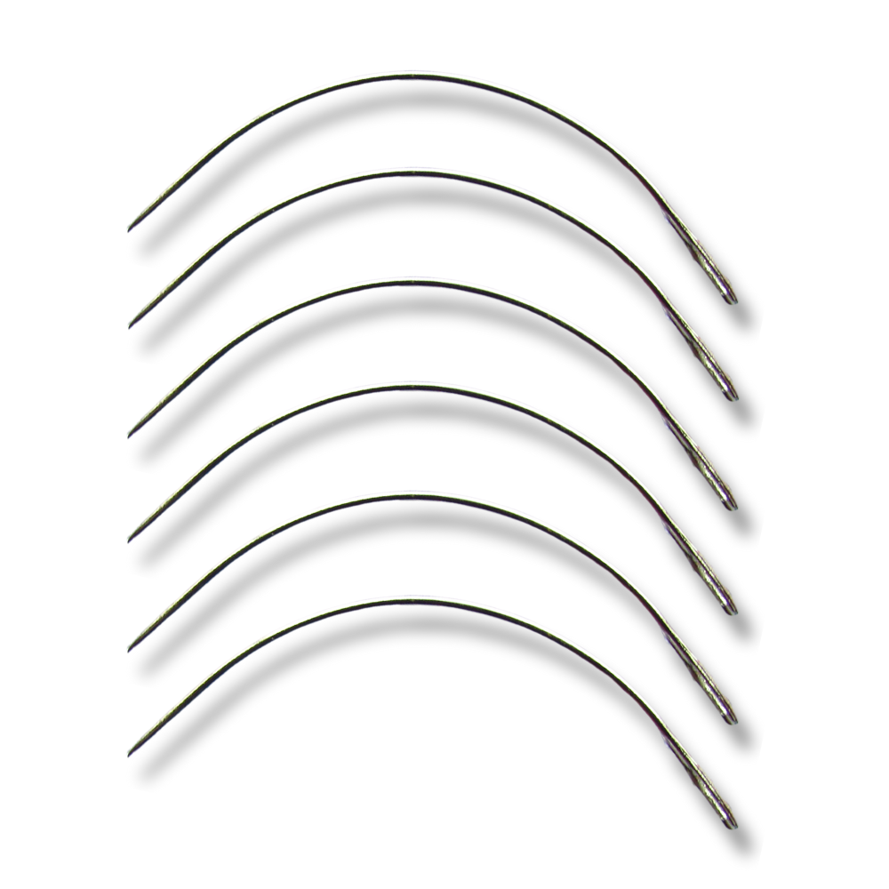 Aguja Curva No. 5. Perfecta para tapicería, colchones, pelotas o zonas de difícil acceso. Herramienta útil donde una aguja recta no funciona. Paquete x 25 unidades.