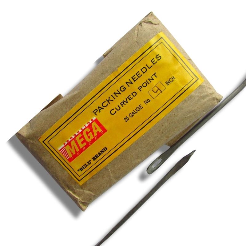 También conocida como aguja espartera o saquera, esta herramienta es indispensable para coser materiales rústicos como costales, alfombras o sacos. Tiene una punta aplanada y curvada que facilita su inserción sin dañar el tejido, y un ojillo ovalado para enhebrar hilo grueso con facilidad.