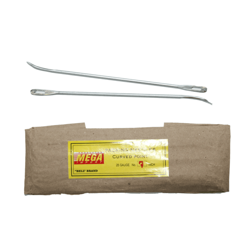 También conocida como aguja espartera o saquera, esta herramienta es indispensable para coser materiales rústicos como costales, alfombras o sacos. Tiene una punta aplanada y curvada que facilita su inserción sin dañar el tejido, y un ojillo ovalado para enhebrar hilo grueso con facilidad.
