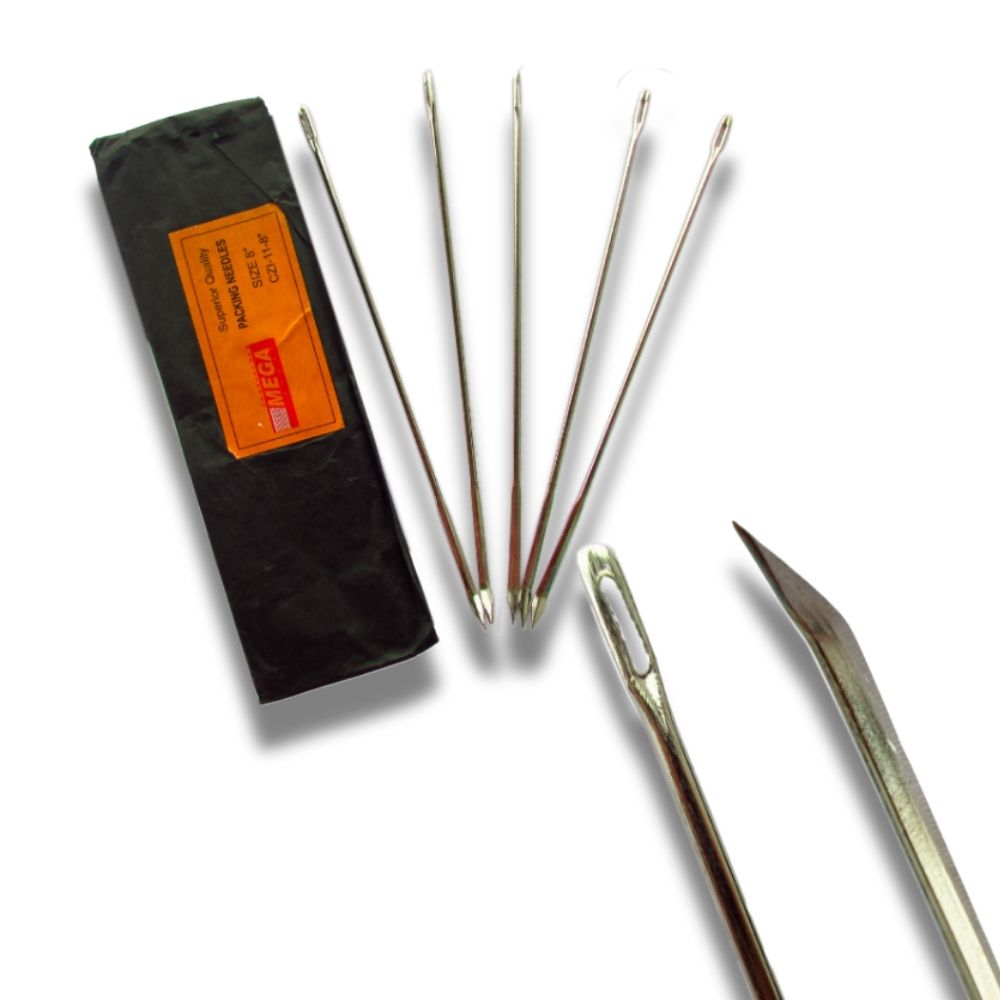 Esta aguja, también conocida como espartera o saquera, ha sido tradicionalmente utilizada para coser a mano sacos, costales, alfombras o telas gruesas. Su punta ligeramente curvada permite una inserción más cómoda y su ojillo grande facilita enhebrar hilo grueso.