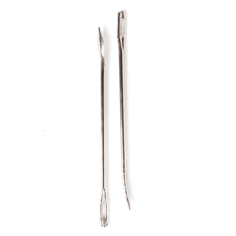 También conocida como aguja espartera o saquera, esta herramienta es indispensable para coser materiales rústicos como costales, alfombras o sacos. Tiene una punta aplanada y curvada que facilita su inserción sin dañar el tejido, y un ojillo ovalado para enhebrar hilo grueso con facilidad.