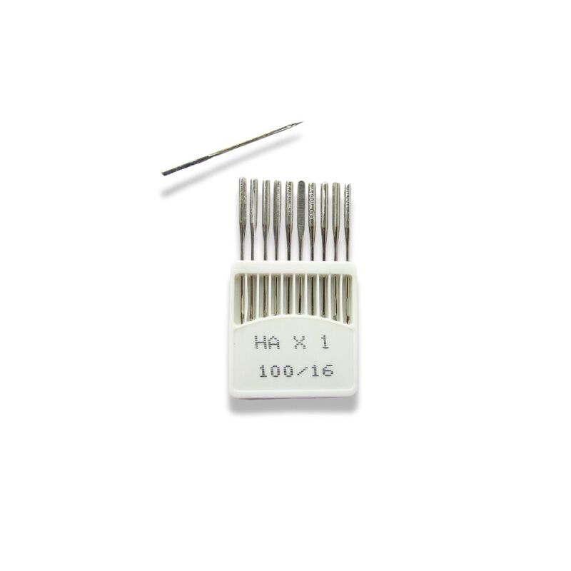 Aguja HA1/15 16-100 para máquina familiar, de 4 cm de largo, compatible con la mayoría de máquinas de coser domésticas. Ideal para proyectos de costura en telas ligeras y medianas. Caja por 10 cartones de 10 unidades (total: 100 agujas).