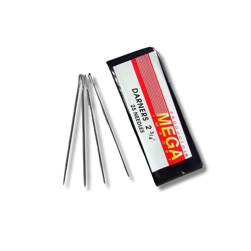 Aguja Pony Capotera de tamaño 2 3/4 especial para telas gruesas como cuero, tapicería o lonas, Tiene ojo plateado y punta afilada, ideal para costuras resistentes. Se vende por millar (1000 unidades) y esta disponible en otros tamaños y con ojo dorado y plateado.