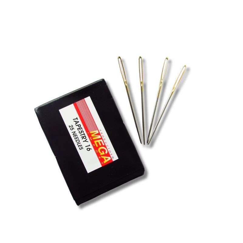 Aguja Pony Punta Roma No. 16, metálica con ojo dorado. Ideal para bordar o coser con hilos gruesos sin dañar la tela. Punta roma que protege el tejido. Presentación: millar (1.000 unidades).