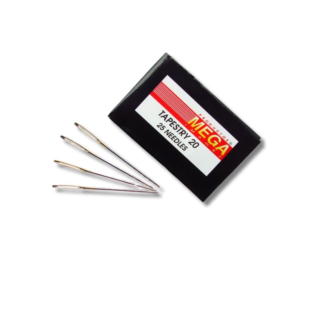 Aguja Pony Punta Roma No. 20 con ojo dorado. Ideal para bordar o coser con hilos gruesos o lana. Punta roma que protege el tejido. Presentación por millar (1.000 unidades).