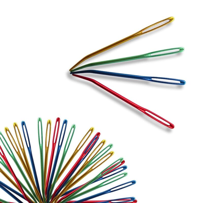 El ojo plateado, amplio y visible, permite enhebrar fácilmente cordones, lanas o hilos de mayor grosor, ofreciendo comodidad y eficiencia durante el trabajo. Su estructura metálica garantiza resistencia y durabilidad, incluso en proyectos exigentes o de larga duración.