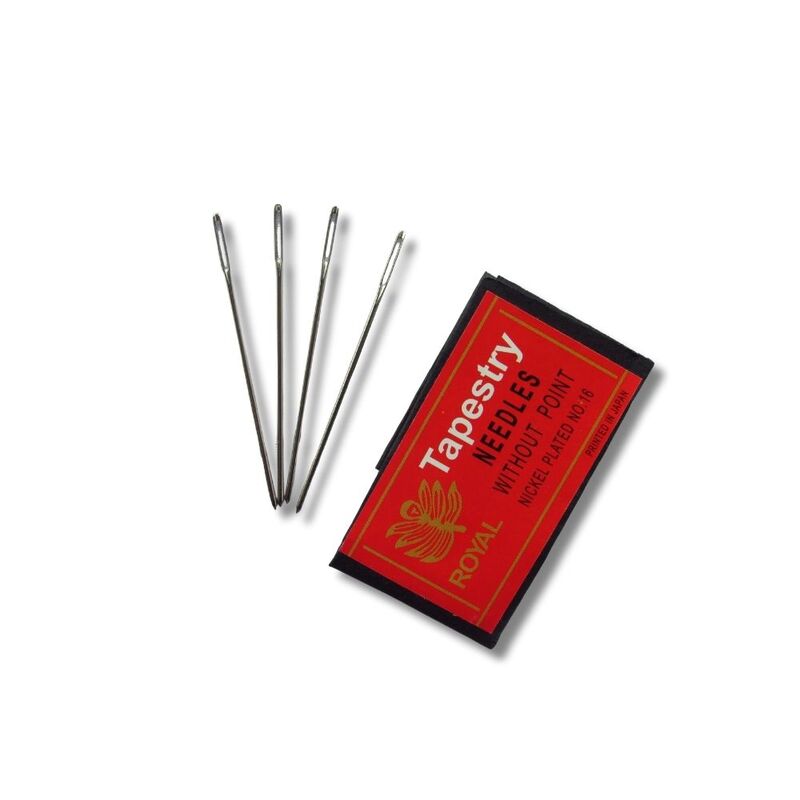 Aguja Punta Roma No. 16 con ojo plateado. Metálica, con punta roma que no daña el tejido. Ideal para bordado, costura y punto de cruz. Presentación: millar (1.000 unidades).
