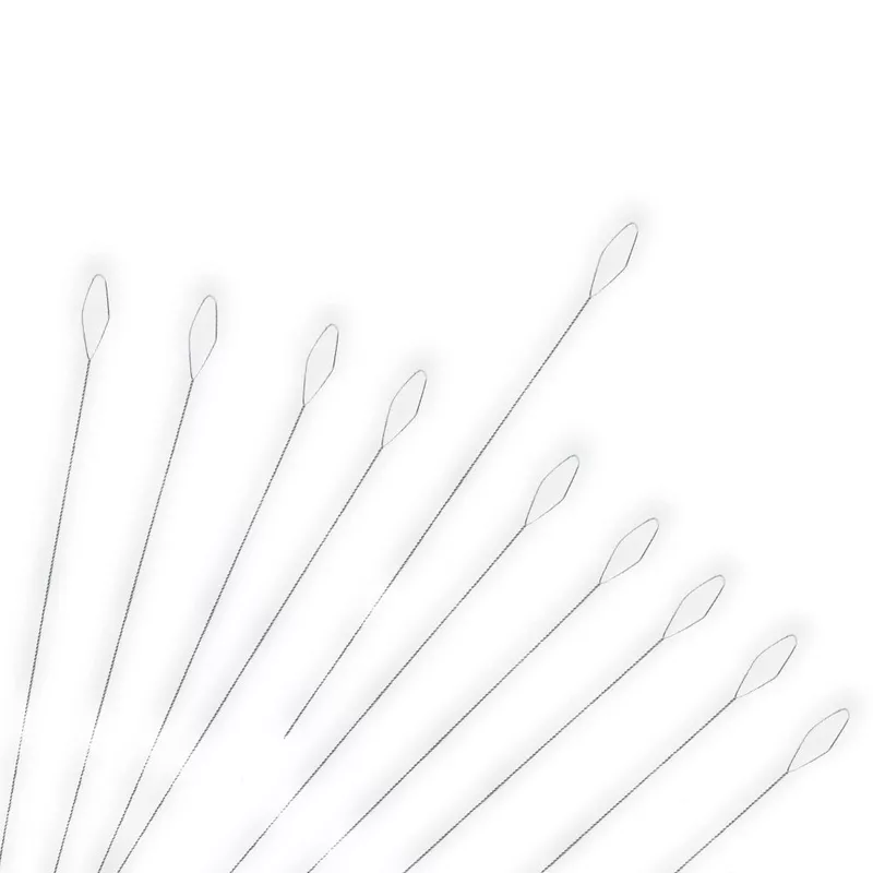 Agujas de pelo flexibles y prácticas, perfectas para pasar hilo o cordones por orificios pequeños. Ideales para bisutería y manualidades. Presentación: paquete x 100 unidades.