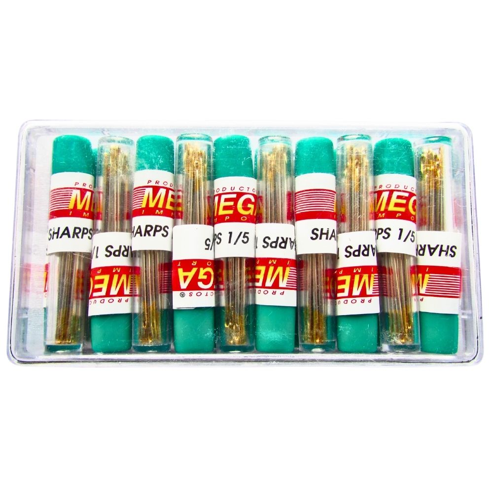 Este práctico agujetero en tubo contiene 20 agujas Sharps con ojo dorado, en surtido del No 1 al 5. Diseñado para trabajos de costura general, su presentación en tubo plástico de 6–7 cm lo hace ideal para organizar y proteger tus agujas. Caja por 20 tubos.