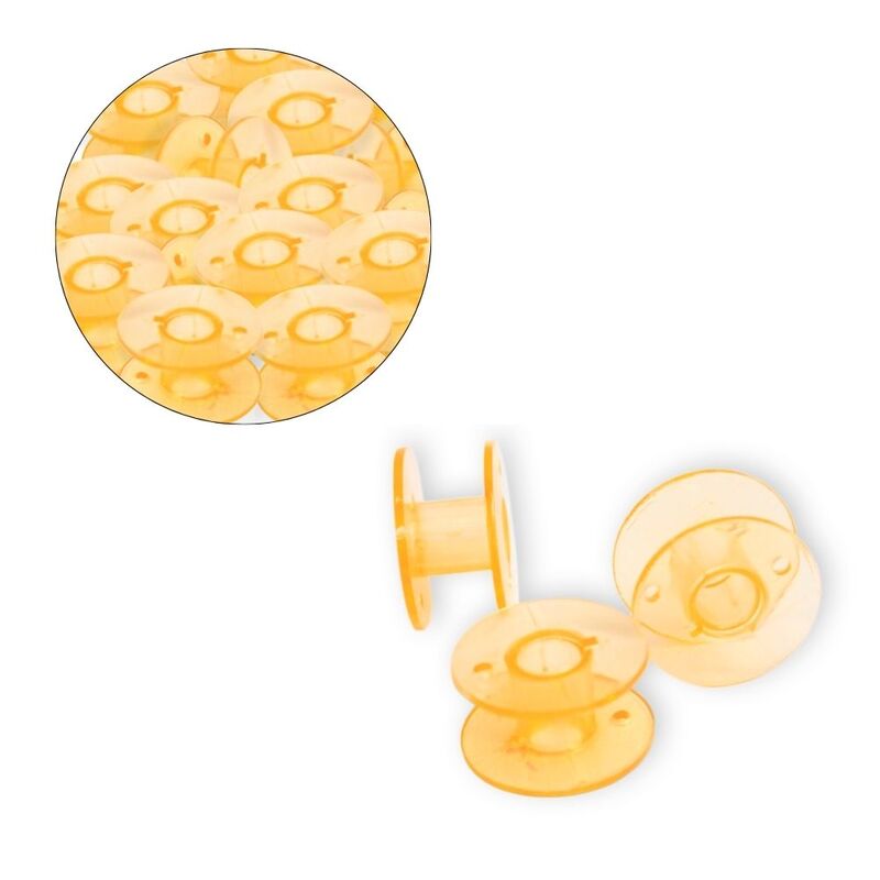 Carretel plástico de gran capacidad, ideal para máquinas industriales y algunos modelos familiares. Su diseño alto permite mayor cantidad de hilo por devanado. Fabricado en plástico resistente. Disponible en azul, fucsia, naranja, rojo, verde y transparente. Paquete con 200 unidades.