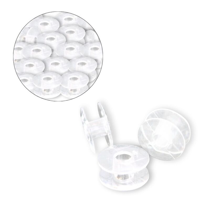 Están fabricados en plástico resistente, lo que garantiza un uso cómodo, ligero y duradero. Son compatibles con la mayoría de máquinas industriales y también con algunos modelos familiares que aceptan carretes de mayor tamaño.