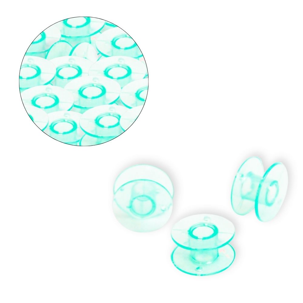 Carretel plástico de gran capacidad, ideal para máquinas industriales y algunos modelos familiares. Su diseño alto permite mayor cantidad de hilo por devanado. Fabricado en plástico resistente. Disponible en azul, fucsia, naranja, rojo, verde y transparente. Paquete con 200 unidades.