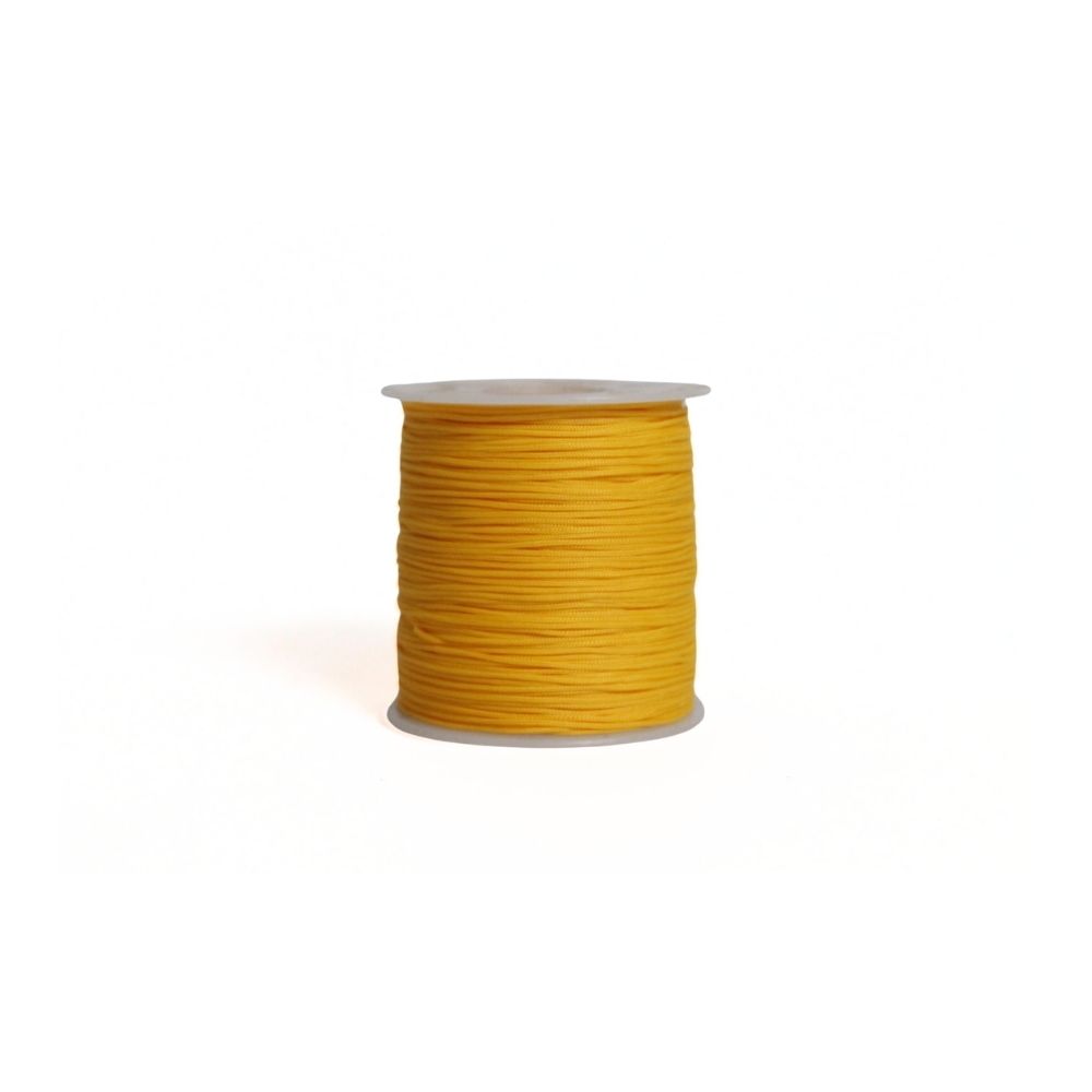 Cordón decorativo 08 amarillo quemado, 82% poliéster y 18% poliolefina, grosor 1 mm. Rollo x 144 yardas, ideal para bisutería y manualidades.