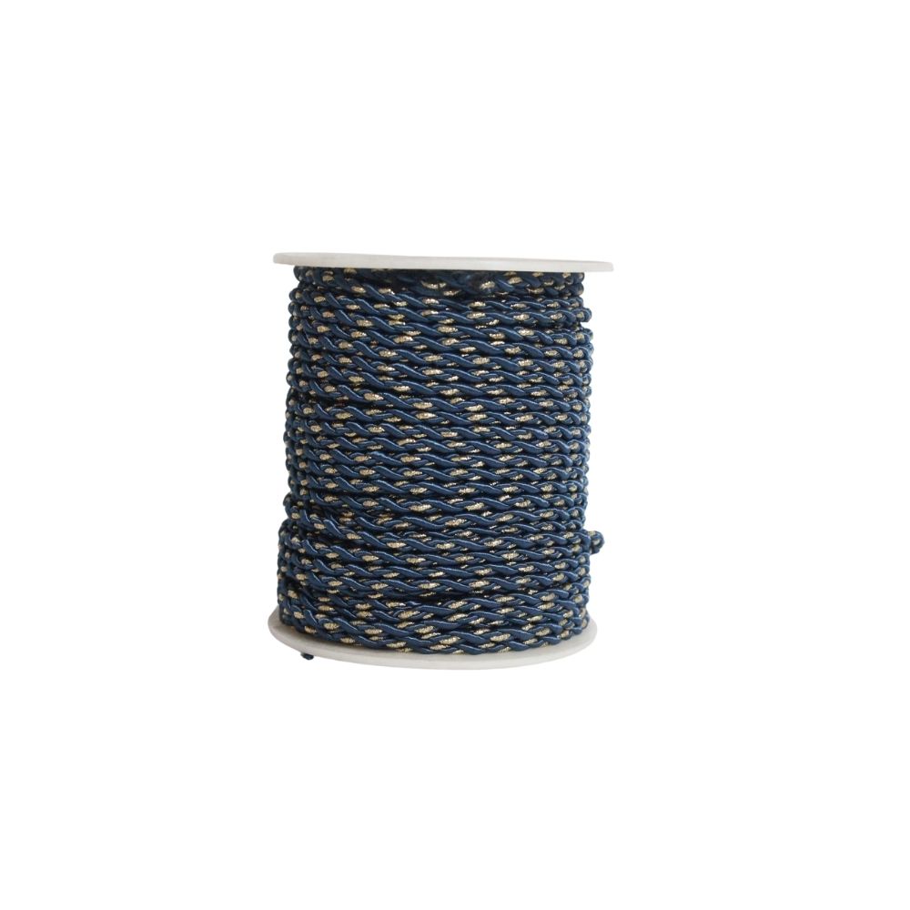Cordón trenzado Lurex azul con destellos dorados. Rollo de 50 yardas, ideal para manualidades, costura y decoración elegante.