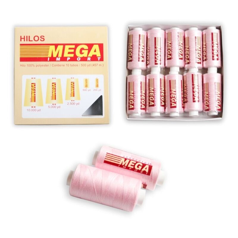Hilos De Coser x 500 Yardas # 127 Rosado Caja X 10 Tubinos