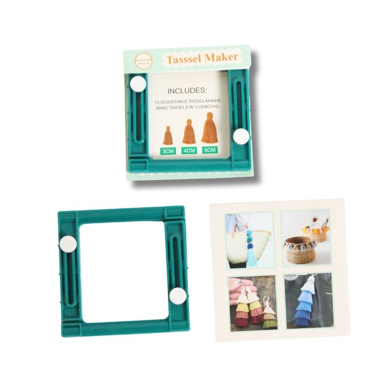 Kit para crear borlas de forma rápida y sencilla. Compacto, portátil y fácil de usar. Ideal para manualidades, prendas tejidas y decoración.