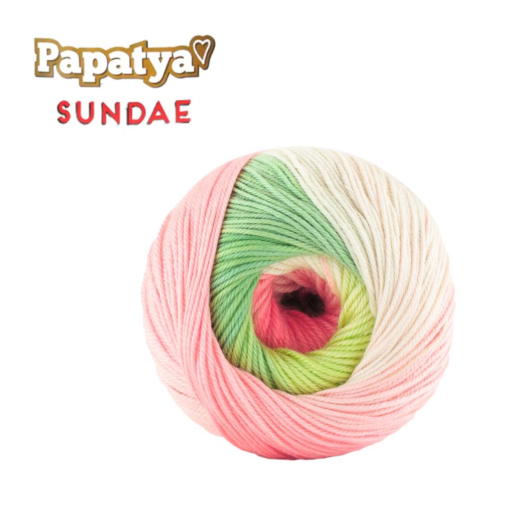 La lana Papatya Sundae es un hilo hecho de 100% microfibra acrílica, que se destaca por su textura suave y sedosa, muy similar al algodón mercerizado. Este hilo ha sido diseñado pensando en la comodidad y la belleza visual: sus transiciones de color son delicadas pero definidas, creando franjas perfectas que añaden elegancia a cualquier prenda o accesorio sin necesidad de cambiar de ovillo. Encuéntrala en 12 colores, en paquetes por 5 ovillos.