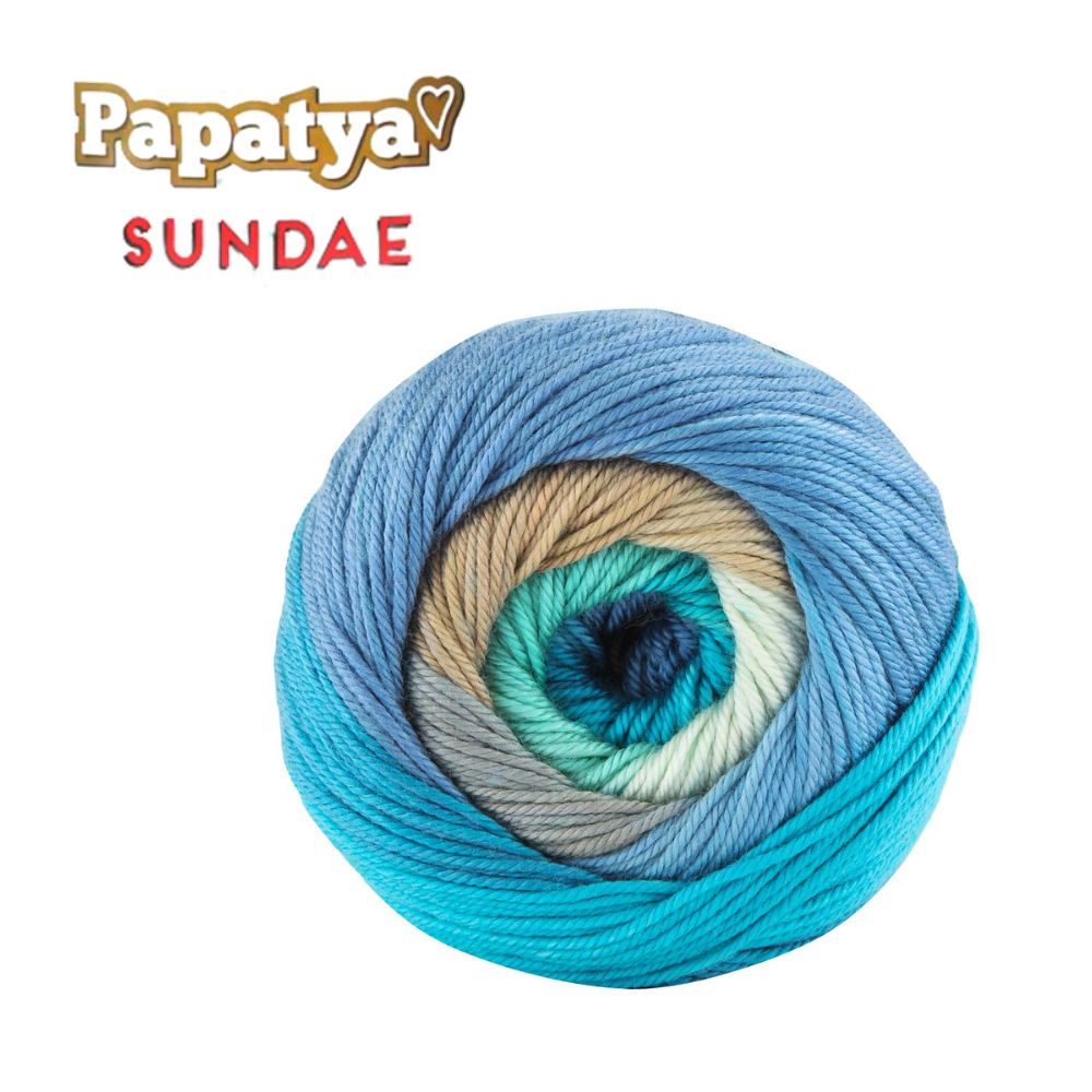 La lana Papatya Sundae es un hilo hecho de 100% microfibra acrílica, que se destaca por su textura suave y sedosa, muy similar al algodón mercerizado. Este hilo ha sido diseñado pensando en la comodidad y la belleza visual: sus transiciones de color son delicadas pero definidas, creando franjas perfectas que añaden elegancia a cualquier prenda o accesorio sin necesidad de cambiar de ovillo. Encuéntrala en 12 colores, en paquetes por 5 ovillos.