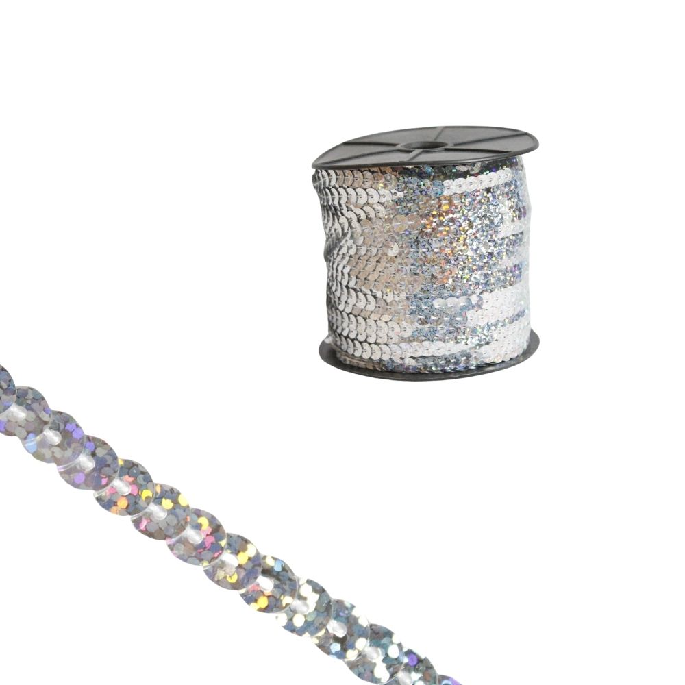 Lentejuela Holografica Plateada Rollo X 100 Yds