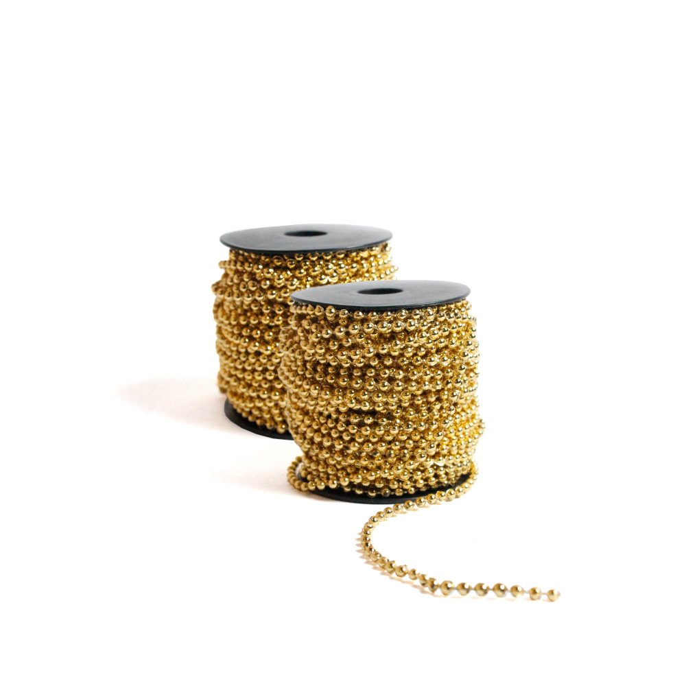 El hilo perlado o cadena de perlas, viene en tres medidas diferentes y con variedad de tonos a elegir, es un hilo fuerte y facil de cortar para tus manualidades y las puedes ver reflejadas en guirnaldas de perla para navidad, ramos de novia, tocados, o más.
