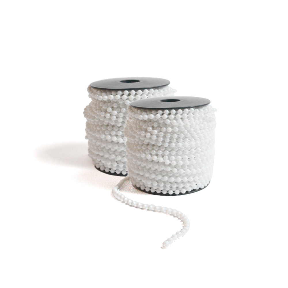 El hilo perlado o cadena de perlas, viene en tres medidas diferentes y con variedad de tonos a elegir, es un hilo fuerte y facil de cortar para tus manualidades y las puedes ver reflejadas en guirnaldas de perla para navidad, ramos de novia, tocados, o más.
