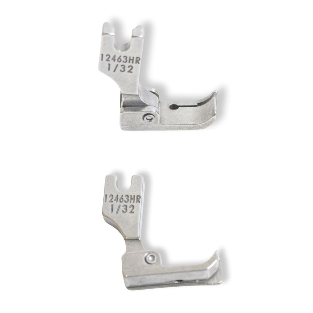 Compatible con máquinas de coser industriales rectas, el pie HR 1/32 derecho es una herramienta imprescindible cuando se requiere un nivel superior de acabado y simetría.