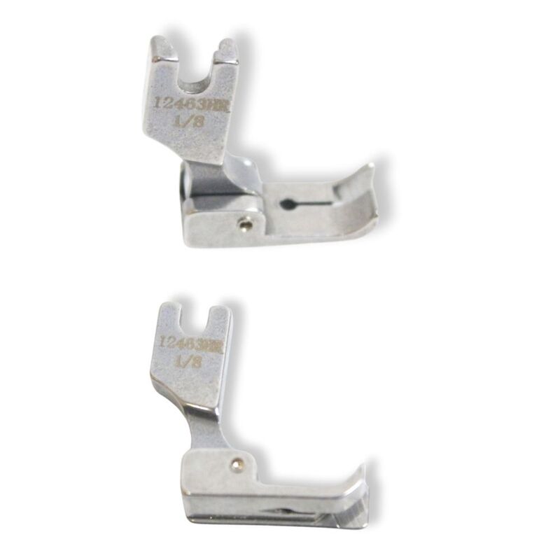 El pie guía derecho HR 1/8 industrial permite costuras rectas con separación precisa de 1/8" del borde. Ideal para acabados visibles, pespuntes decorativos y trabajos industriales con alta precisión.