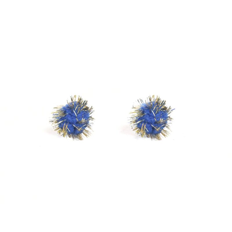 Este pompón metalizado combina suavidad y brillo en un solo accesorio. Su base esponjosa de color azul se realza con finos destellos dorados que le dan un acabado brillante y llamativo.