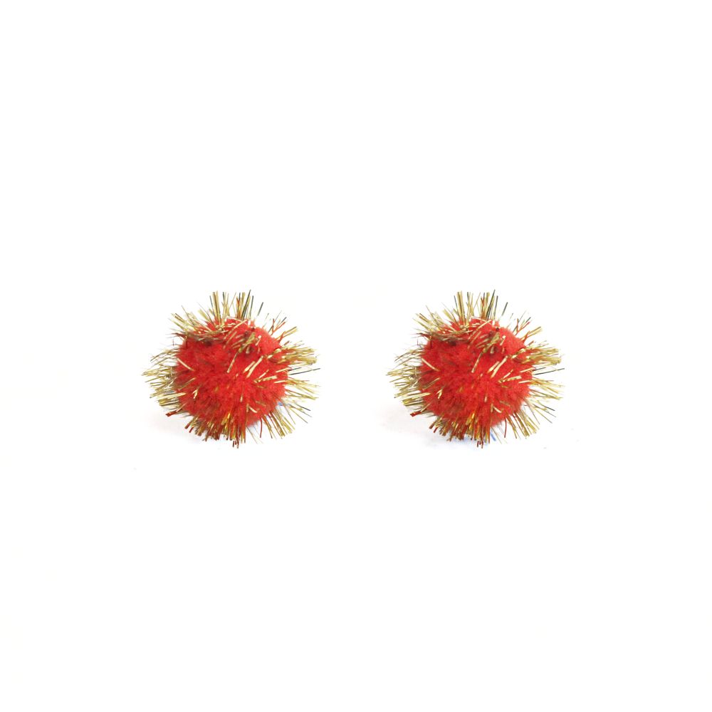 Este pompón metalizado combina suavidad y brillo en un solo accesorio. Su base esponjosa de color rojo se realza con finos destellos dorados o plateados que le dan un acabado brillante y llamativo.
