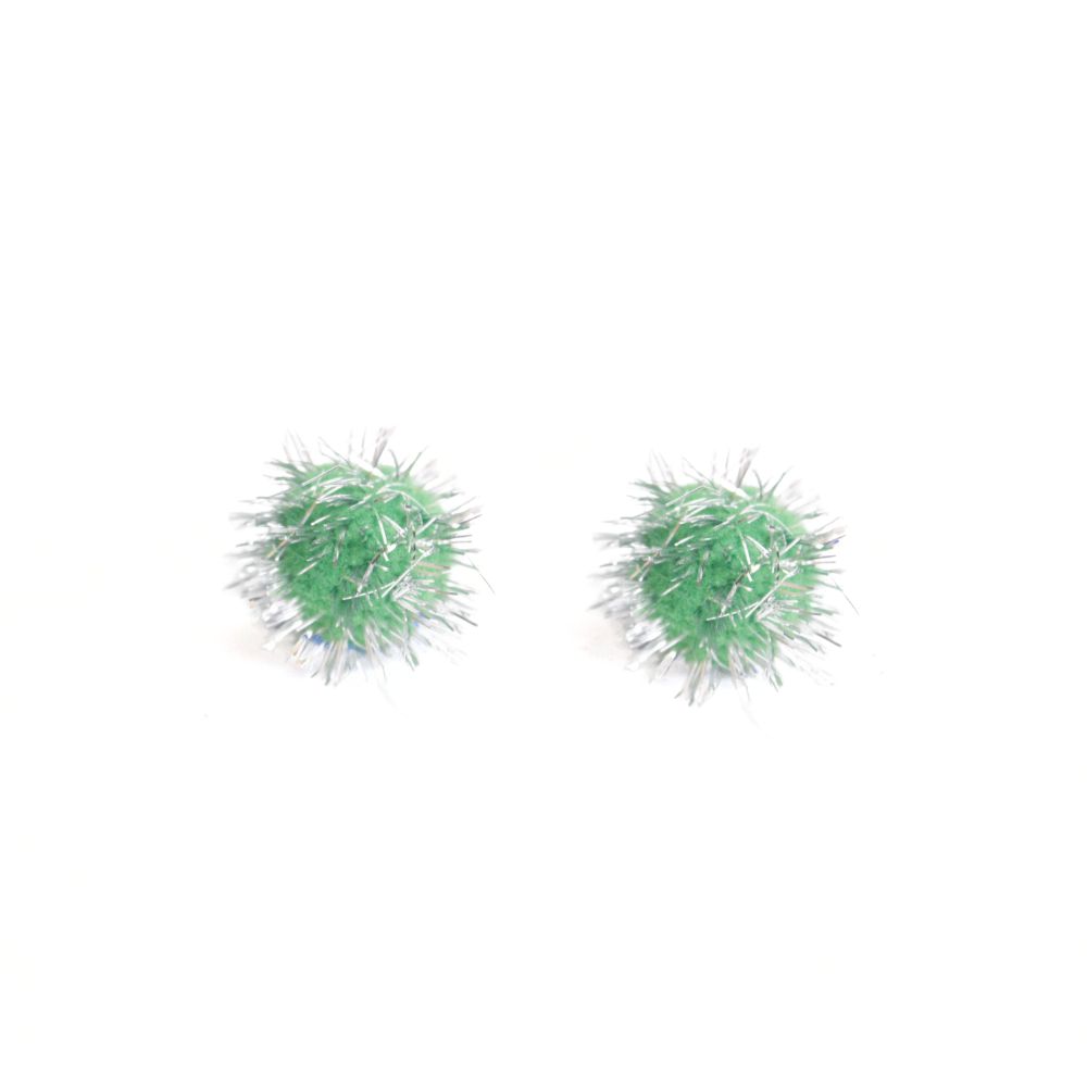Este pompón metalizado combina suavidad y brillo en un solo accesorio. Su base esponjosa de color verde se realza con finos destellos dorados o plateados que le dan un acabado brillante y llamativo.