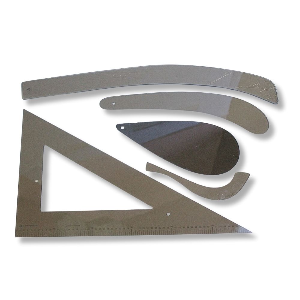 Set completo con 5 reglas de diferentes formas, ideales para trazar, cortar y diseñar moldes de forma precisa. Vienen en tres tamaños (estándar, 1/2 y 1/4), con excelente flexibilidad y durabilidad. Perfectas para modistería, diseño y arquitectura.