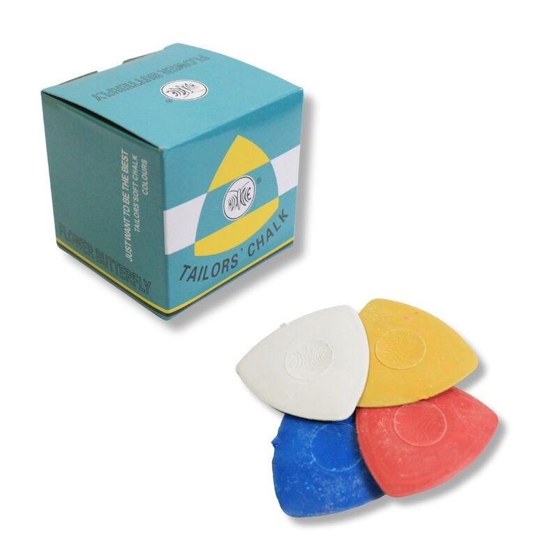 Tiza de sastreria triangular, ideal para marcar la tela sin preocupaciones de manchas, se elimina facilmente al cepillado o con un paño humedo, tiene una muy buena visibilidad sobre cualquier color de tela, presente en colores surtidos o solo en color blanco y en cajas de 10 unidades.
