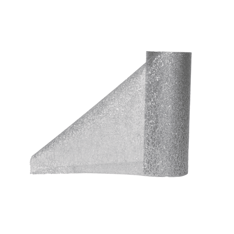 Tull organza con escarcha, fino y translúcido, ideal para confección, decoración y manualidades. Aporta brillo delicado y elegancia. Ancho de 15 cm. Rollo x 10 yardas.