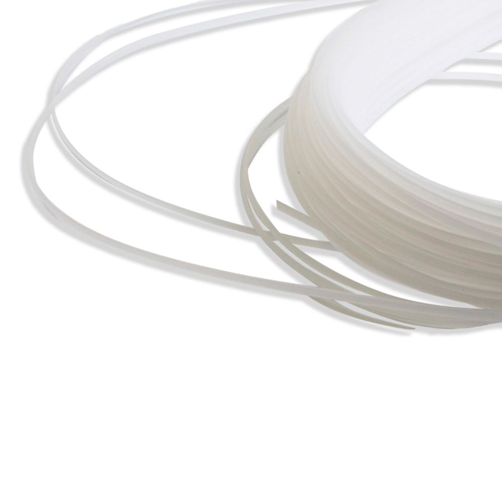 Varilla plástica lisa flexible y resistente, ideal para confección de corsets y prendas estructuradas. Suavidad al contacto con la piel y excelente soporte para moldes complejos. Disponible en rollos de 100 metros de 4 mm.